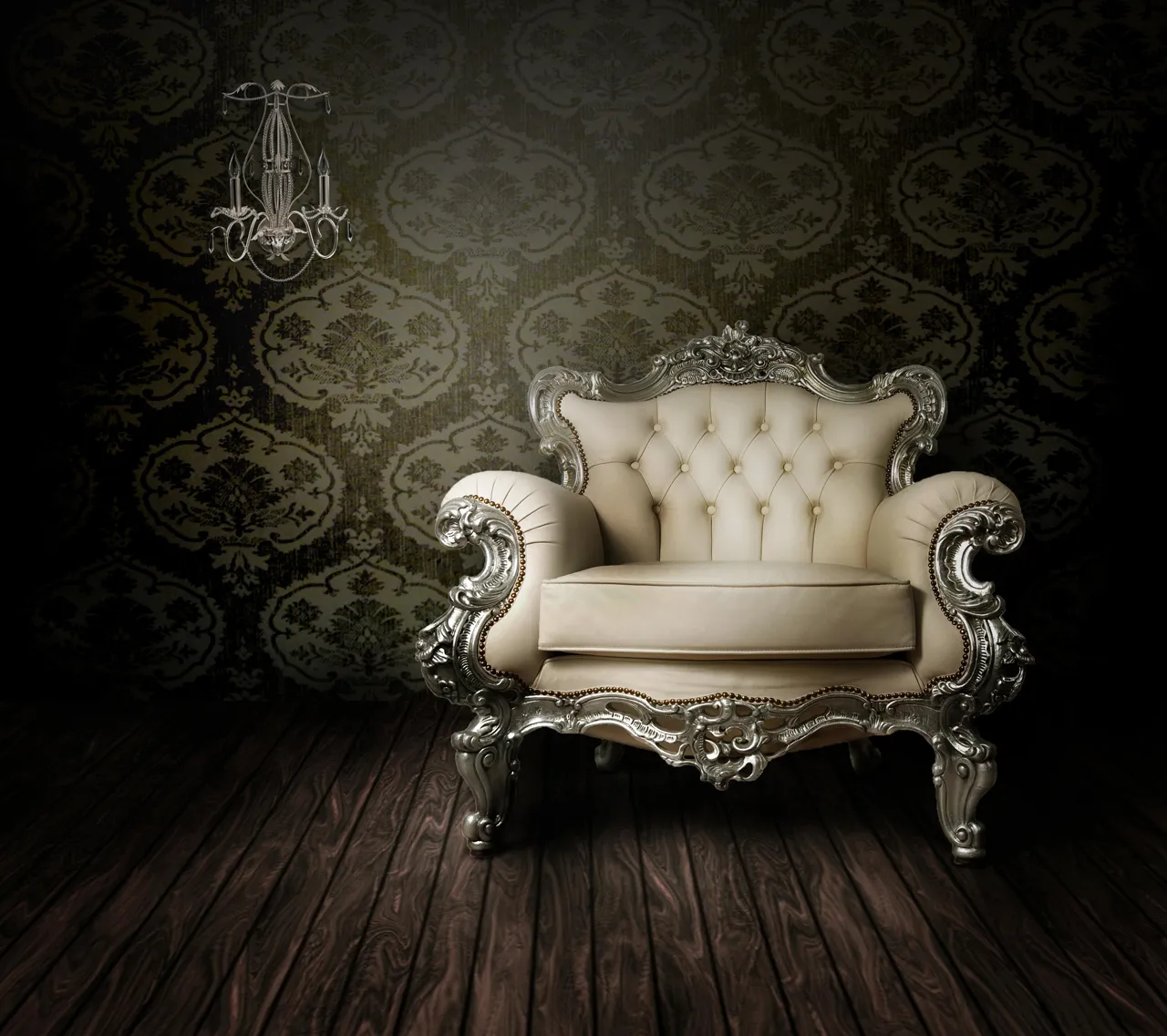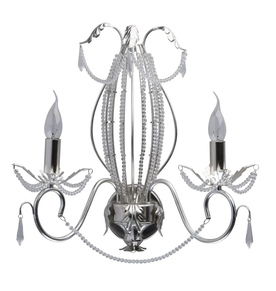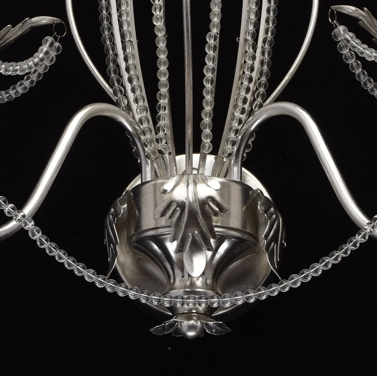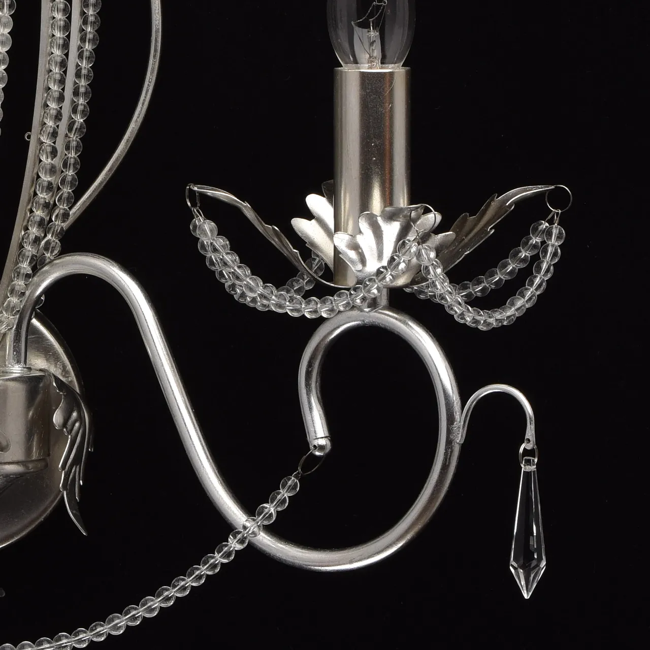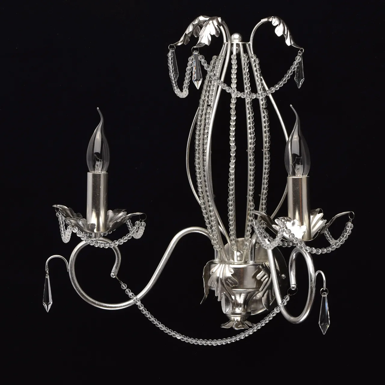 Металлическое основание, покрытое сусальным серебром, декоративные подвески из прозрачного хрусталя