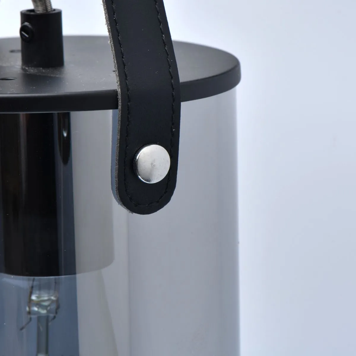 Основание/металл/черный Плафон/стекло/серый Декор/кожа/черный