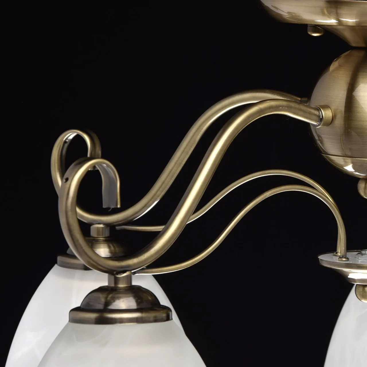 Металлическое основание цвета античной бронзы. Плафоны - алебастровое стекло.