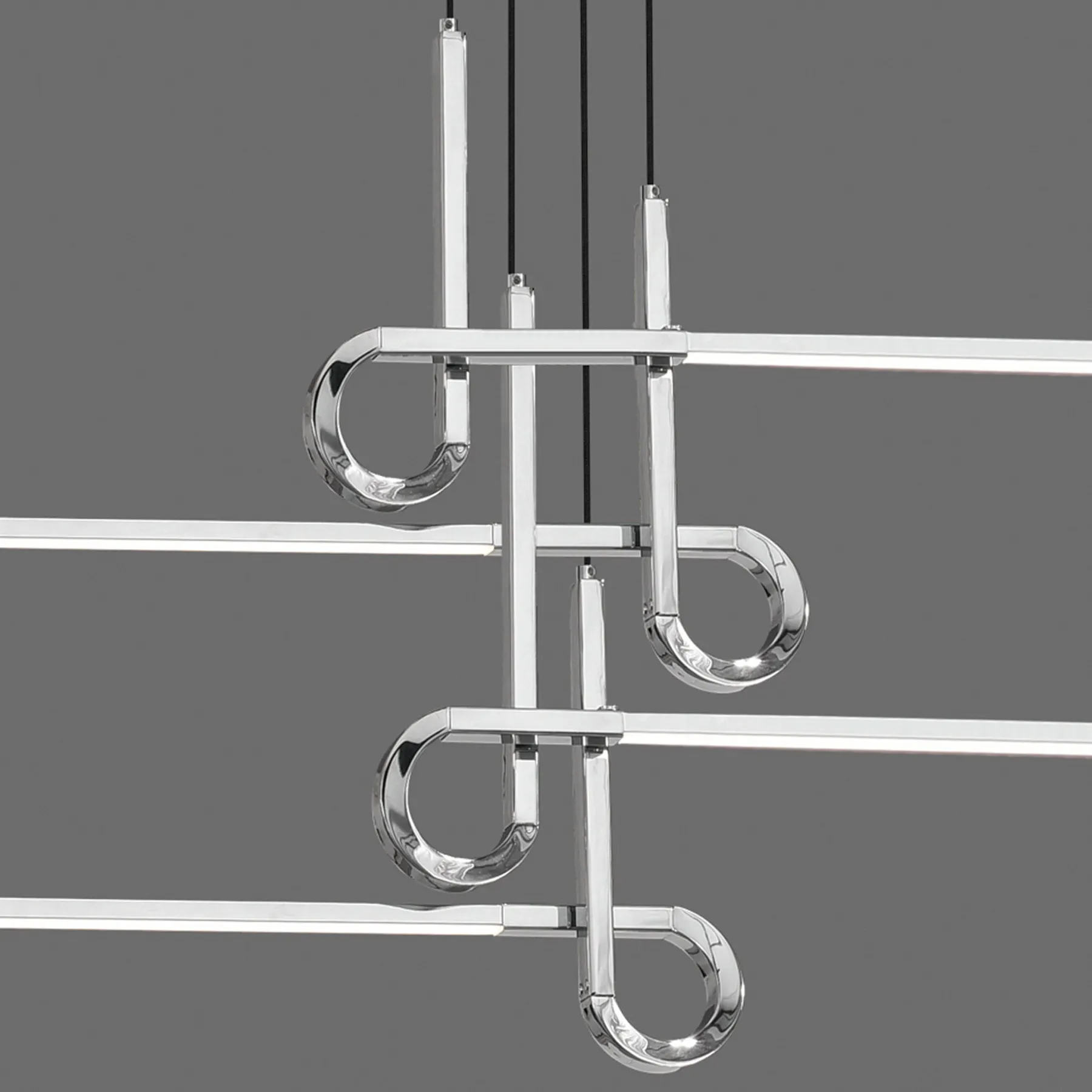 Разработанный Сантьяго Севиллано, CINTO представляет собой набор контрастов между линейностью света и его изогнутых металлических соединений. Такая конструкция обеспечивает элегантность и дают намек на интригу.